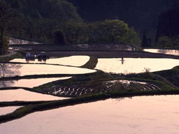 - 千曲川を渡るころになるとやけにしんどくなった。風があったのでまだ良かったのかも知れない。橋からは田毎の月で有名な棚田が見える。観月会が催されるらしく、屋代駅から姨捨行きの臨時バスが運行されているのを見た。前日松本から長野に電車で通り過ぎたときも、眼下にこの棚田を眺めることが出来た。駅で云えば姨捨駅付近だ。姨捨駅は特殊な構造で、本線が下を走っており、駅に入る普通電車はスイッチ・バックするのである。御蔭でじっくり眺められた。松本からの電車は、それはそれはトンネルの多い鉄路で、山国を実感させられると同時に、長野は松本とは別のちがう盆地だと認識させられるコースである。複線化工事が進行中だが、まだ完成区域は途切れ途切れだ。